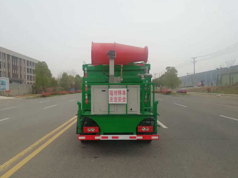 上裝選用5方罐體前置發(fā)動(dòng)機(jī)組,7方罐體后大平臺(tái)放置30米風(fēng)機(jī)和發(fā)電機(jī)組,前置電動(dòng)水炮,前噴后灑側(cè)噴高炮。